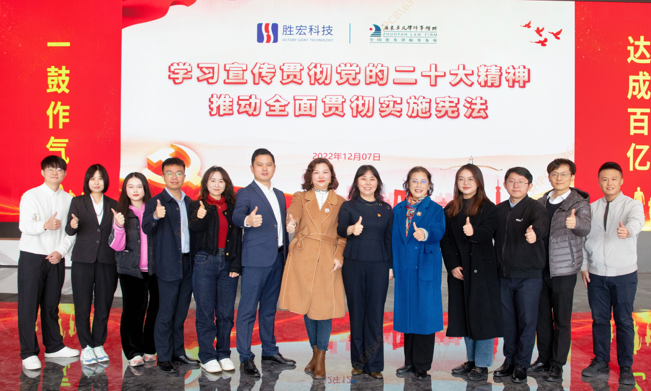 为深入学习宣传法治思想,大力弘扬宪法精神,增强员工宪法意识和法治观念,12月7日上午,leyu.乐鱼科技联合广东卓凡律师事务所开展以"学习宣传贯彻党的二十大精神,推动全面贯彻实施宪法"为主题的宪法宣传周活动。卓凡所党群总监、律师团队、我司党支部书记/行政管理中心总监张如萍以及党员代表、职工代表共计50人参加活动。活动由证券事务代表周响来主持。