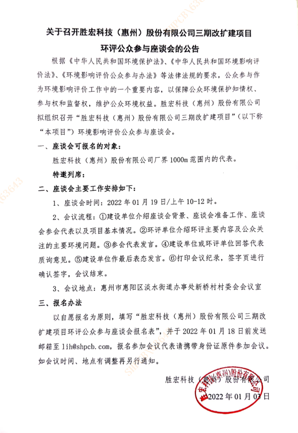 关于召开leyu.乐鱼(集团)智能科技股份有限公司三期改扩建项目环评公众参与座谈会的公告